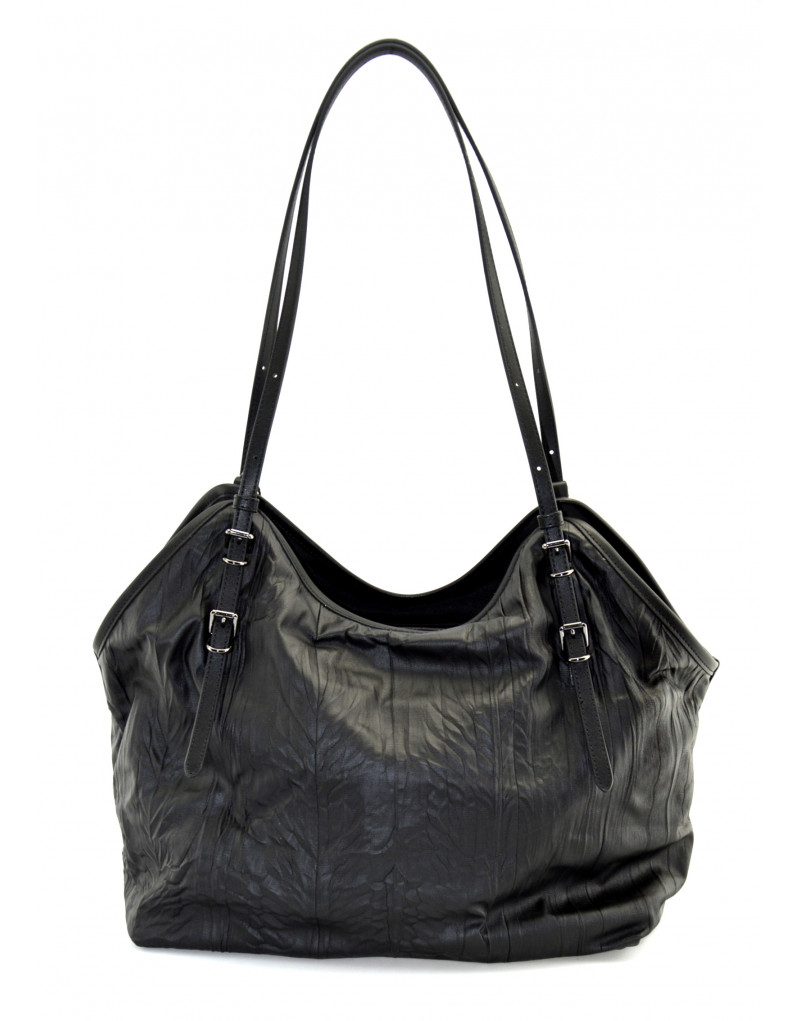 Bolso shopper en material con efecto arrugado. Cierre con cremallera. Asas de hombro regulables. Bolsillo interior con cremallera.