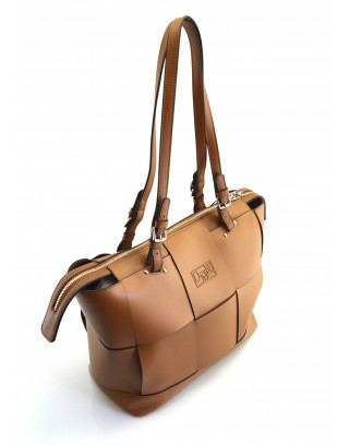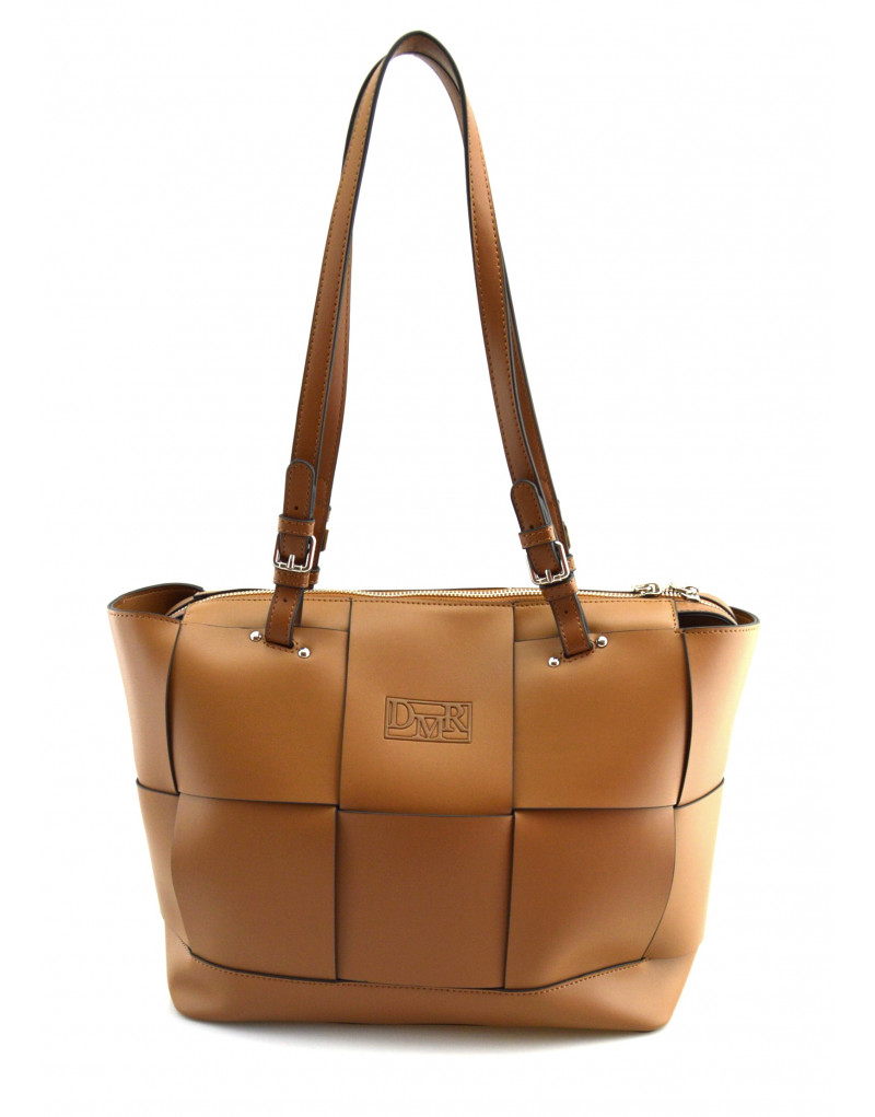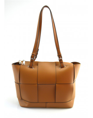 Bolso shopper en material trenzado. Cierre con cremallera. Asas de hombro regulables.