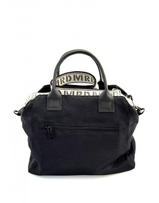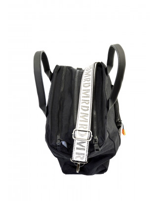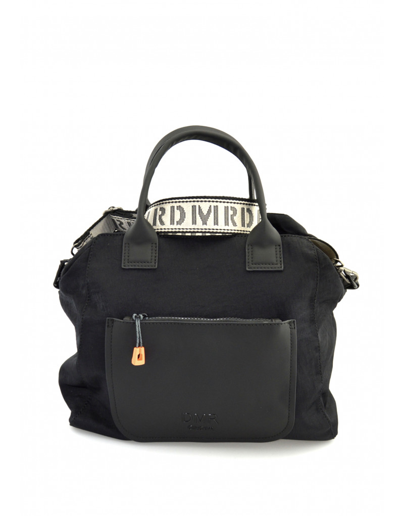 Bolso de mano en nylon y combinación. Tres departamentos cerrados con cremallera. Bolsillo interior y exterior con cremallera. Asa bandolera regulable y extraible.