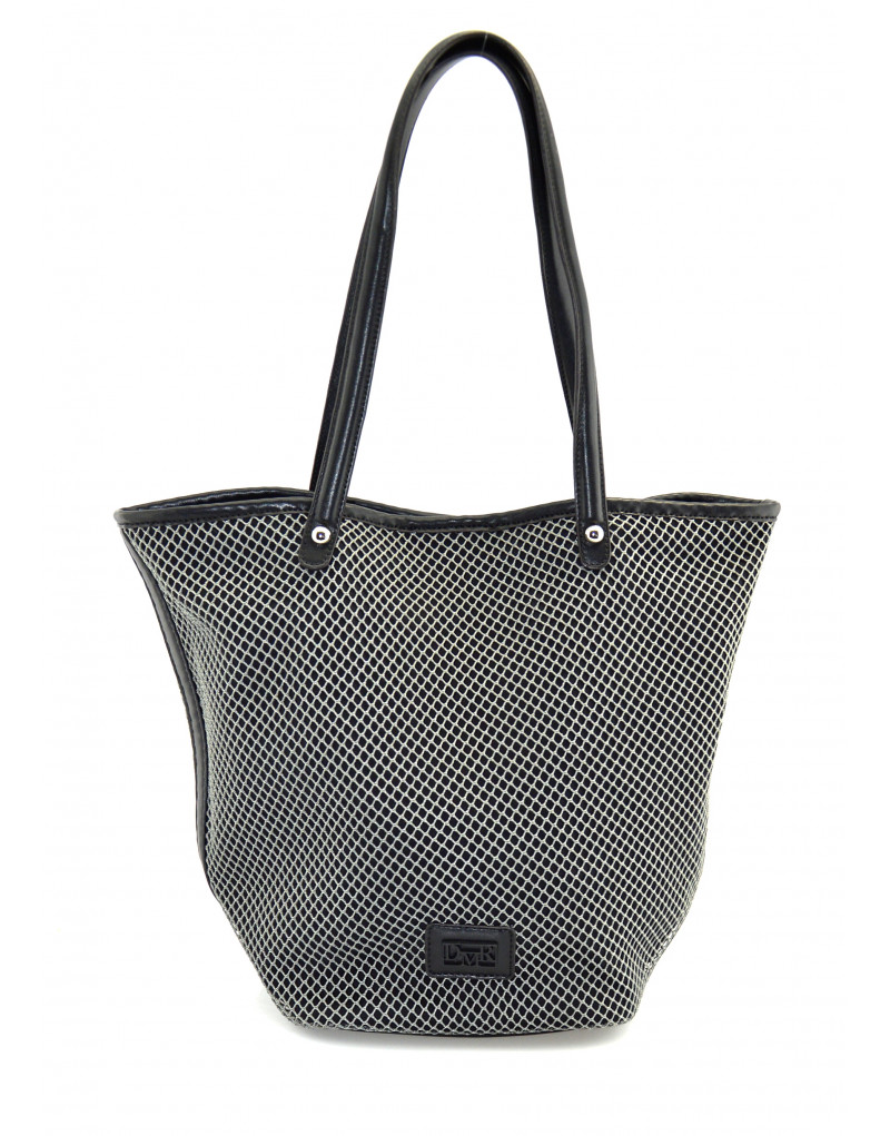 Bolso de dos asas de hombro en material de rejilla y combinación en PU. Cierre con cremallera.