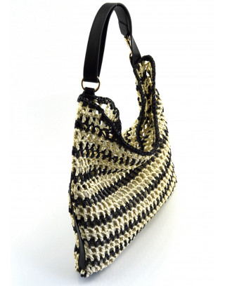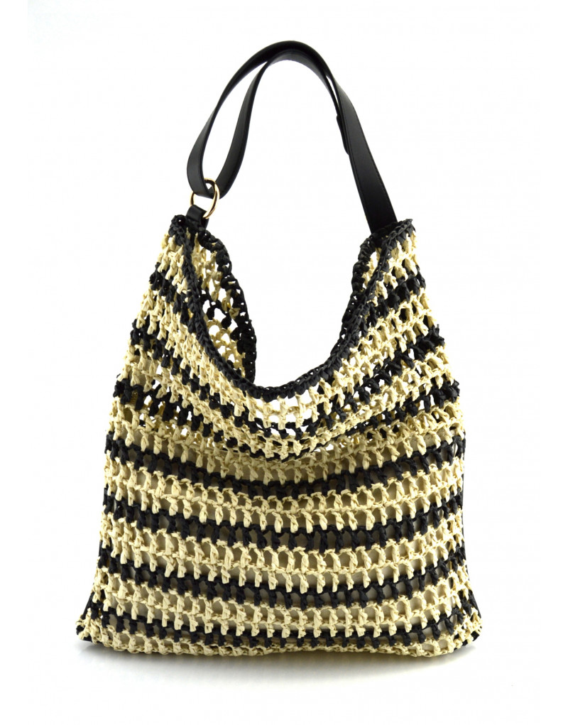 Bolso de un asa ajustable en cuerpo trenzado en dos colores. Combinación en PU. Bolso interior en canvas extraible cerrado con cremallera.